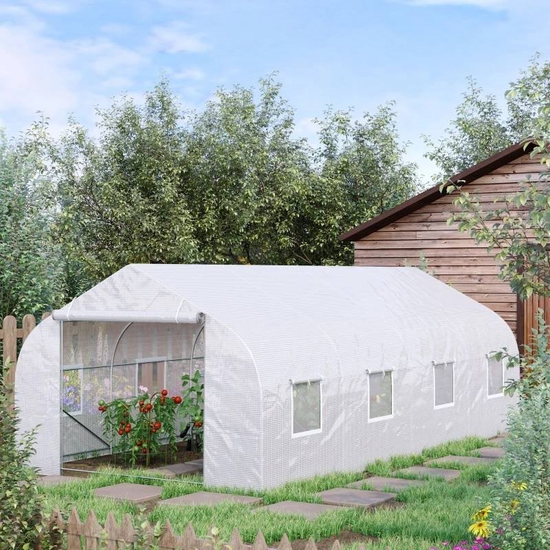 The 19.5 ft x 9.8 ft Outdoor Walk-In Greenhouse offers robust protection and an ideal environment for gardening enthusiasts. With its reinforced steel frame, durable PE cover, excellent ventilation, and spacious interior, it’s perfect for cultivating vegetables, flowers, herbs, seedlings, and more—all year long.