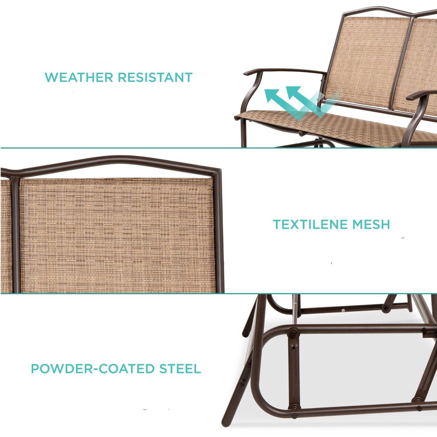 Glide into spring and summer with this elegant 2-Seater Weather-Resistant Mesh Patio Loveseat Swing Glider Rocker with Armrests in Brown. Designed for both relaxation and durability, this glider is the perfect addition to any patio, garden, balcony, or porch.