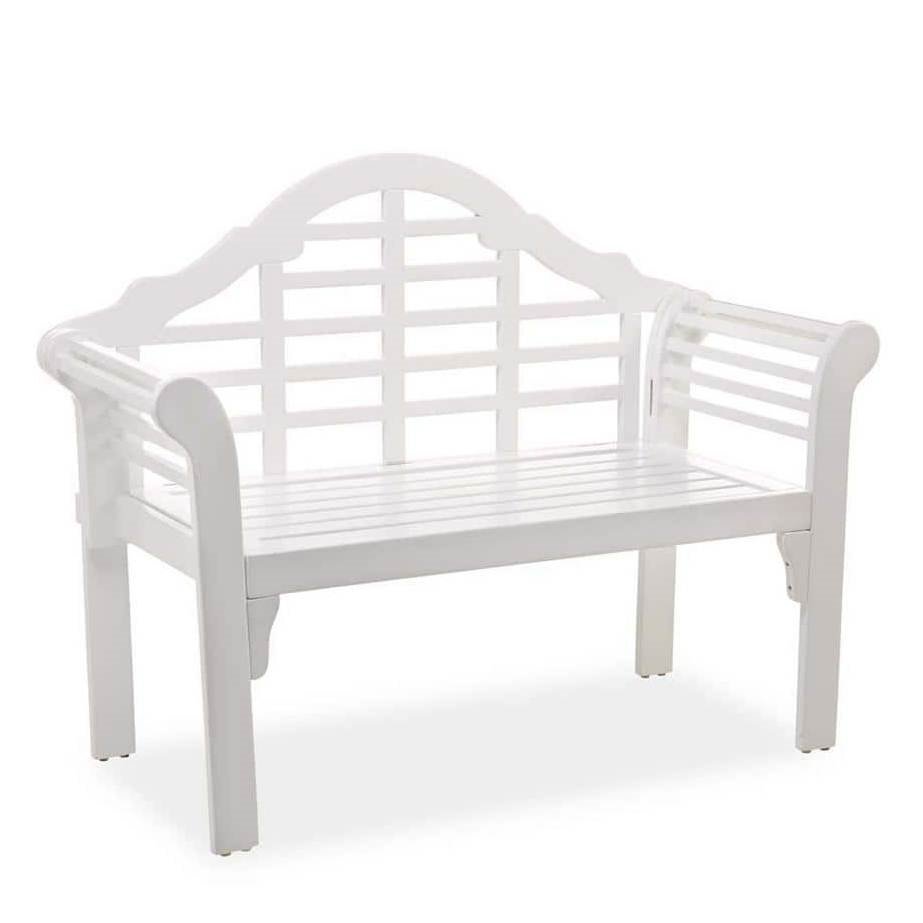 This classic outdoor wooden garden bench is made from FSC-certified eucalyptus wood. Sustainable and sturdy, the naturally durable wood features a quality white finish for a beautiful, low-maintenance product. Distinctive design featuring an arched back and scrolled arms. Easy to store with a seat that folds up and locks. The eucalyptus wood is naturally weather-resistant, but it is recommended to store furniture in a cool/dry covered area when not in use.
