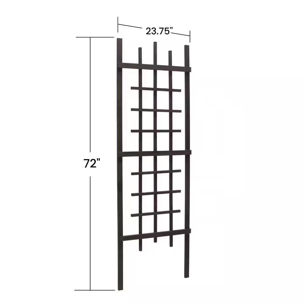Create vertical space in your garden with this 72-inch Modern Garden Trellis in Black Wood Finish. Perfect for indoor and outdoor use, the two-frame, black painted design provides space for your growing climbing plants. The pre-assembled stakes are easy to push into the ground.