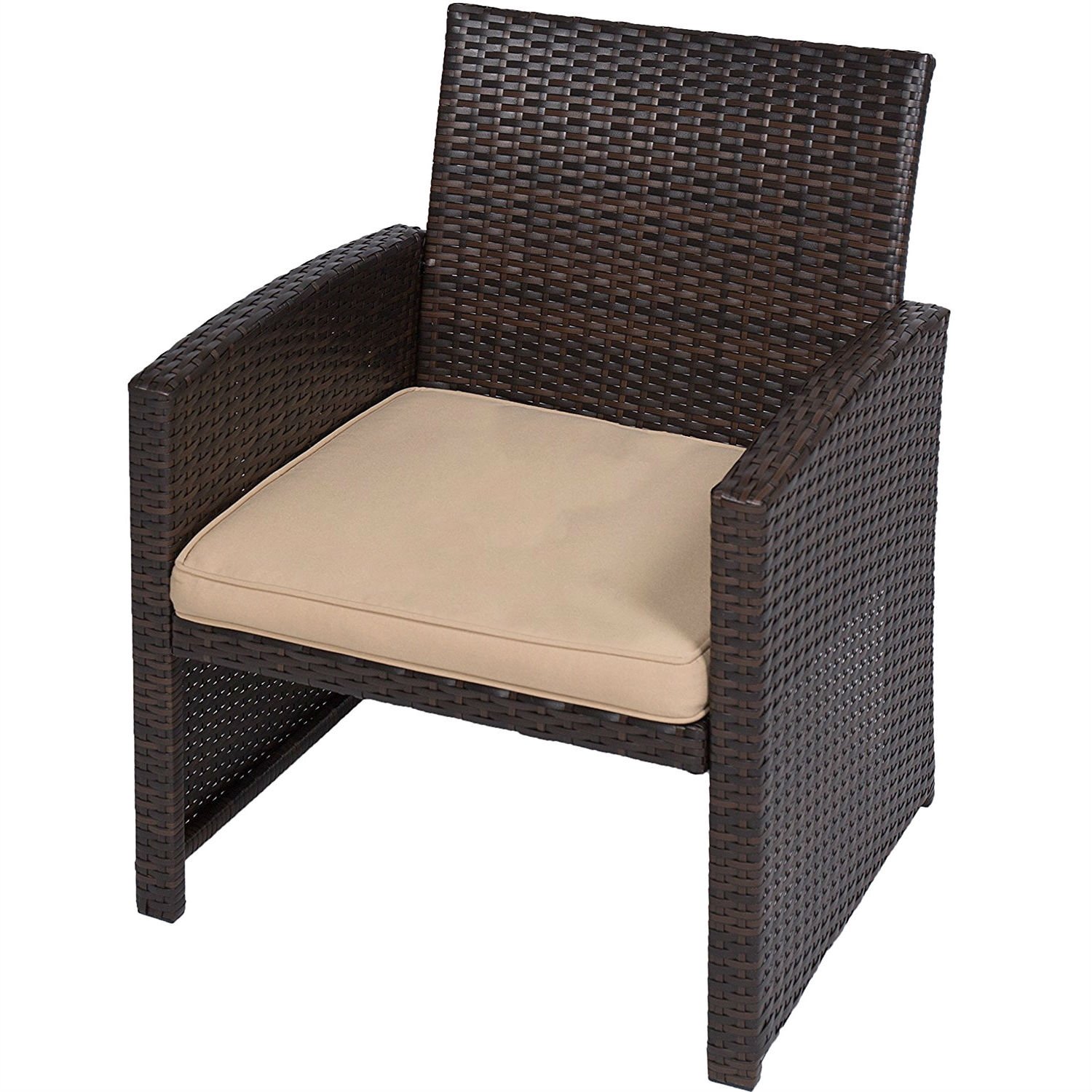 • Sturdy steel frame and high-quality wicker that can support up to 300 pounds per seat will make this set a mainstay in your patio for years