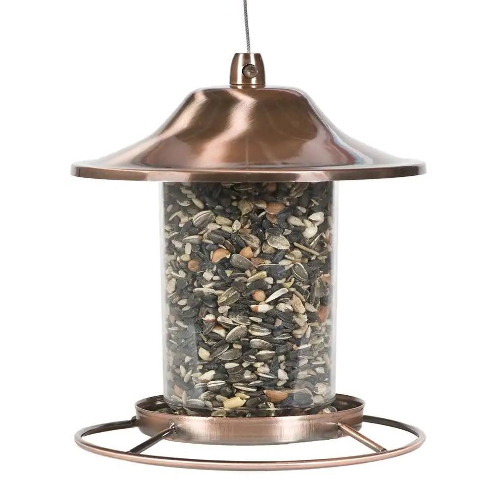 • Copper Bird Feeder with Plastic Seed Reservoir Tube and Circular Perch