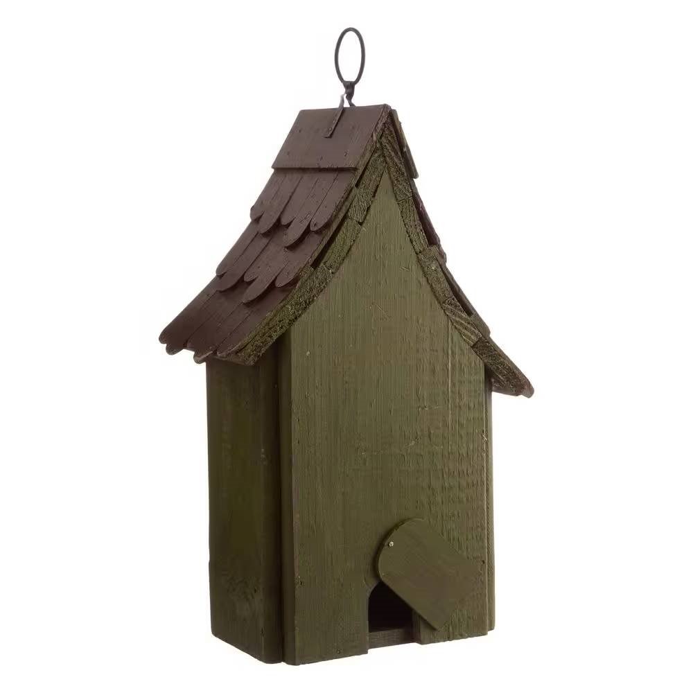 • Dark Green Wood Hanging Bird House for Outdoor Garden Deck Patio Tree