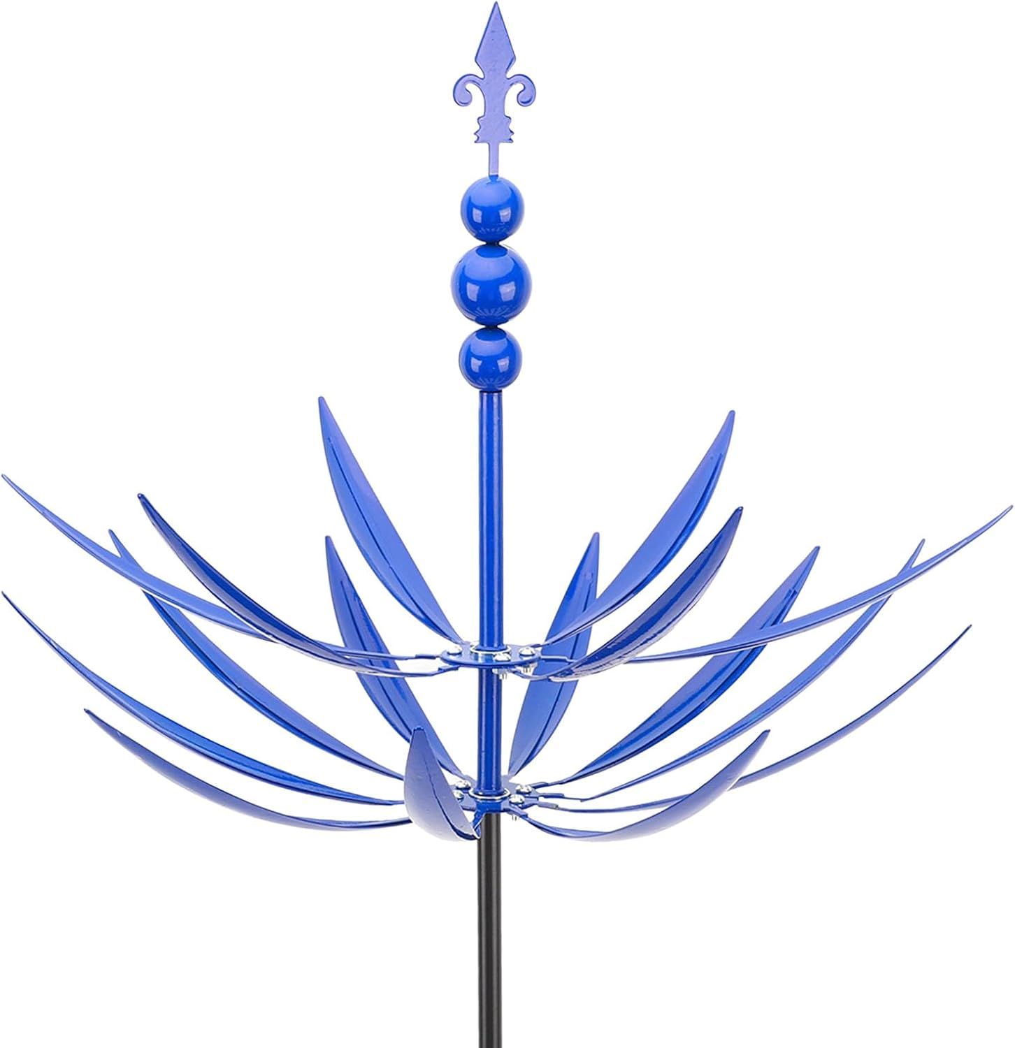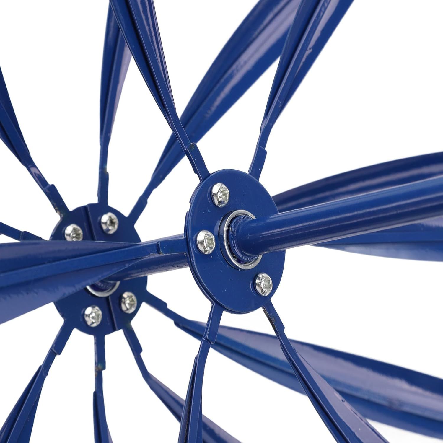 Iron Art Wind Spinner: This wind spinner is crafted with excellent iron material, ensuring excellent erosion and durability. Featuring bright metal gloss and reflective paint gloss, adding a unique art touch to your outdoor garden or yard. Wind Motion Design: The unique dual wind movement mechanism allows the 2 layers of leaves to elegantly rotate in opposite directions on sealed bearings, creating a dynamic balance visual picture that harmoniously combines technology and nature. Water Proof Paint: The leaf is covered with water proof paint, effectively resisting erosion from rain, sun, and other outdoor elements, ensuring the wind spinner retains its new appearance and stable performance in most weather conditions.360 Degree Rotating: The sturdy metal structure paired with ground stake design ensures the wind spinner is securely rooted in the soil, with 360 degree rotating, maintaining stability even in strong wind weather, providing security for your garden. Versatile Use: The rotating windmill is not only a fine outdoor decorative piece enhancing the overall beauty and art ambiance of your garden, but also a practical wind device that promotes air circulation between plants through rotation, positively impacting the garden ecology.