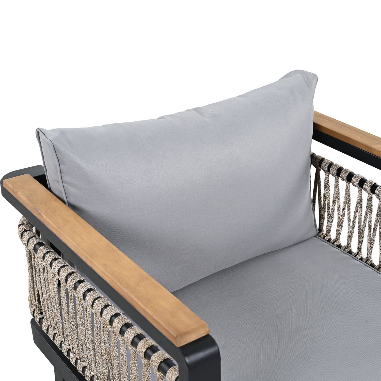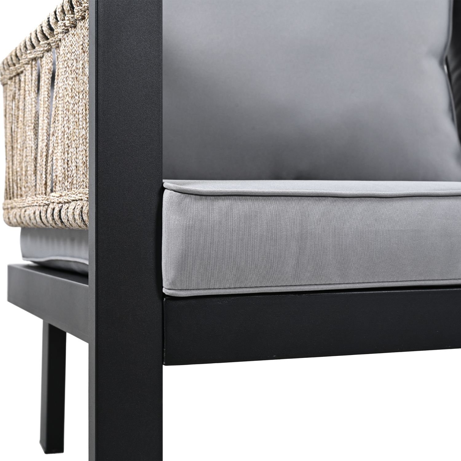 Stylish Woven Rope Detailing - The sides and back of the sofa set feature elegant woven rope accents, adding a contemporary touch to the design. The rope detailing enhances the set's aesthetics while also providing additional durability and strength.