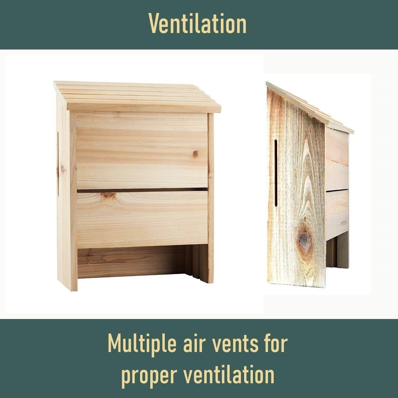 • BAT SHELTER: Constructed of deluxe heavy-duty wood which is naturally rot resistant. The air vents allow for proper ventilation.