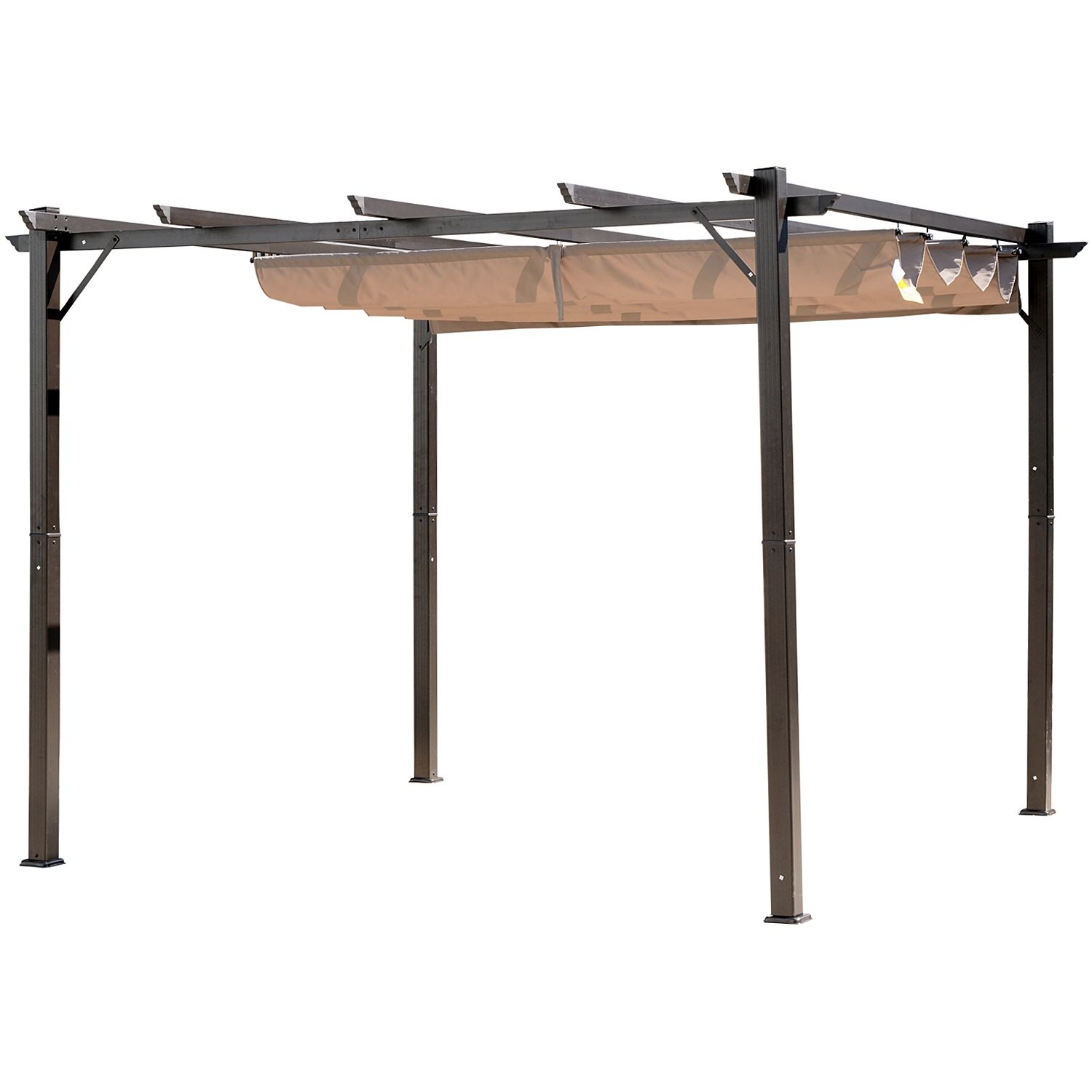 Outsunny 10 ft x10 ft Aluminum Patio Pergola; Retractable Brown Canopy Outsunny 10 ft x10 ft Aluminum Patio Pergola; Retractable Brown Canopy Outsunny 10 ft x10 ft Aluminum Patio Pergola; Retractable Brown Canopy