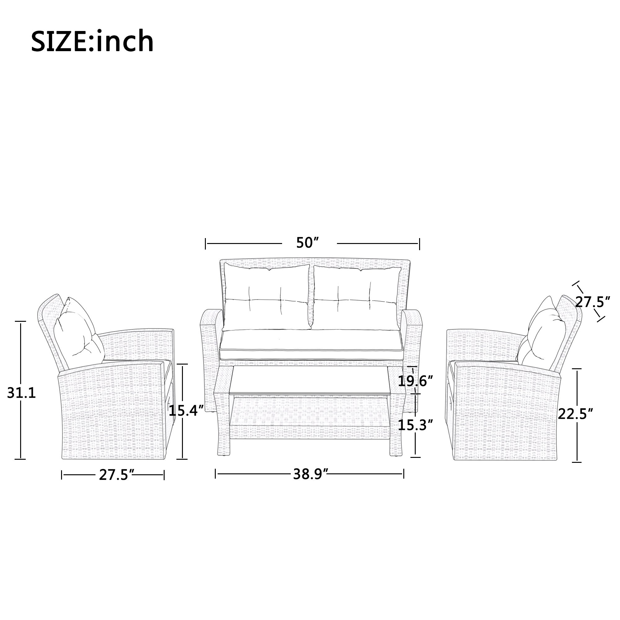 Sofa | 31.1'' H x 51'' W x 27.5'' D |