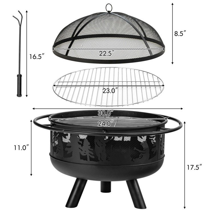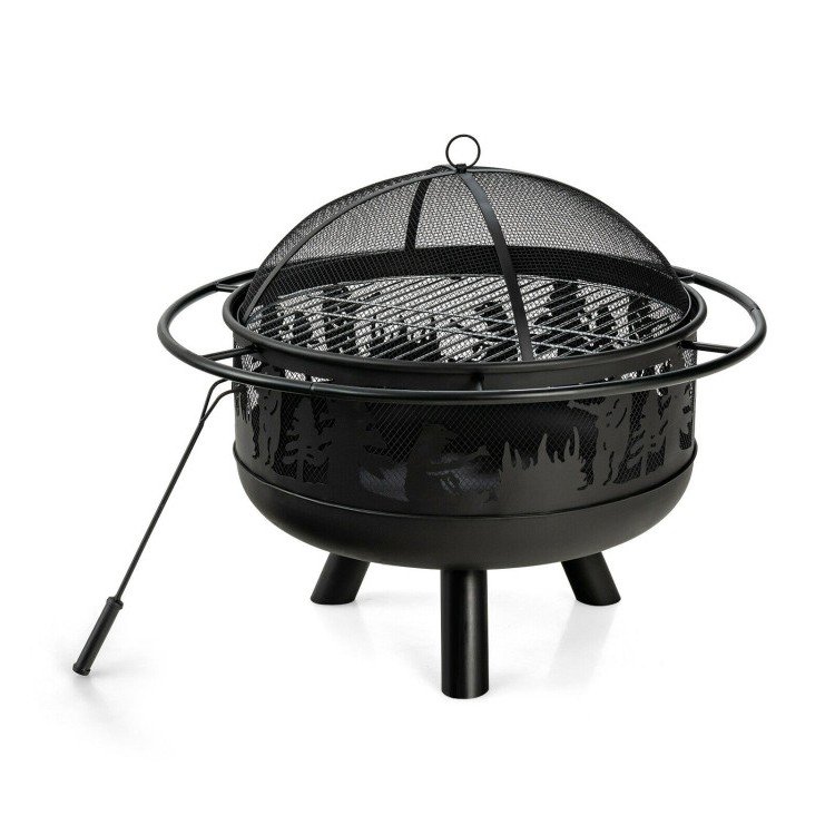 The Portable Patio Screened Wood Burning Fire Pit Cooking Grill with Poker is constructed of high-grade and well-coated iron, which is resistant to deformation, crack, rust and high temperature for long service life. The deep fire bowl allows more logs for prolonged heating. Whether you want to keep warm in cold winter or have a barbecue outdoors, this fire pit gets the job done every time. Comes with a fire poker and spark screen cover.