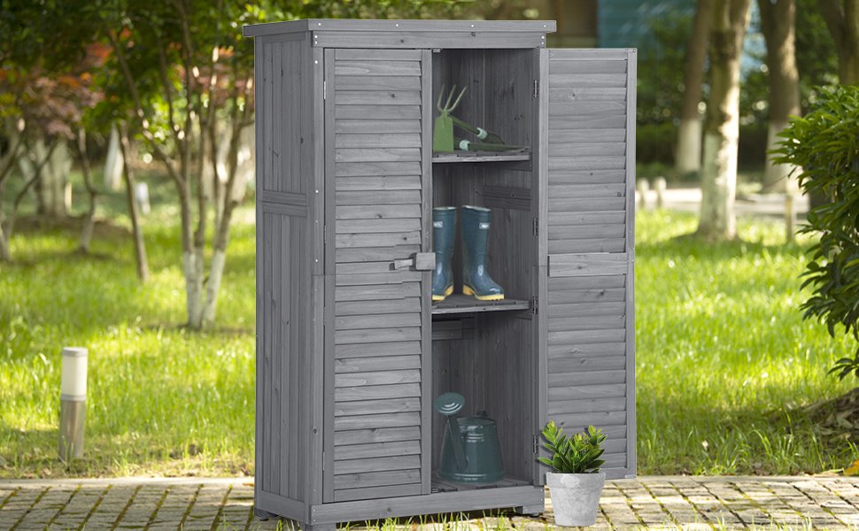 • Ideal for storing garden tools, pots, and accessories